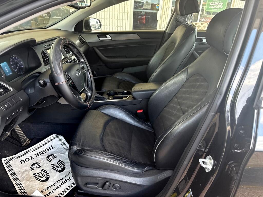 Sporty, efficient, and well-equipped, the 2017 Hyundai Sonata Sport offers a bold design with added performance and style. Powered by a responsive 2.4L engine, it features paddle shifters, a sport-tuned suspension, and 17-inch alloy wheels. Inside, enjoy premium touches like a leather-wrapped steering wheel, power driver seat, and Apple CarPlay/Android Auto. With strong fuel economy, a spacious cabin, and a 5-star safety rating, this Sonata Sport is a perfect mix of comfort and athletic appeal. You'll receive a free CARFAX Vehicle History Report, so you can buy with confidence. The cash price is $9,995, with a firm, no-haggle price. The Certified Pre-Owned (CPO) or finance price is $11,995. Don't miss out-contact us today to schedule a test drive or apply for financing online!
